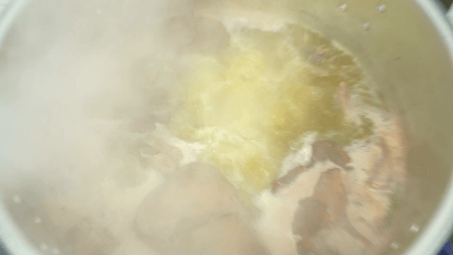 Outer leaves pork back-bone stew boiling intensely