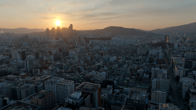 Sunny panoramic view of Gangnam skyline