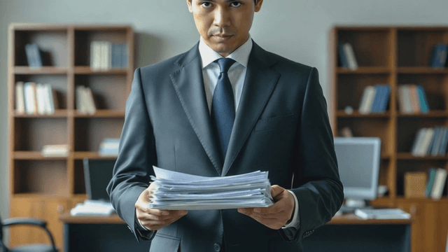 Office Worker Wearing a Suit and Taking Notes in a Diary
