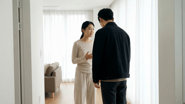 Couple having a conversation indoors