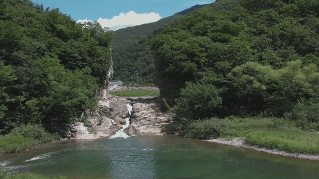 Beautiful river flowing through green mountains