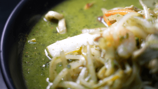 Bowl of jjamppong soup with vegetables