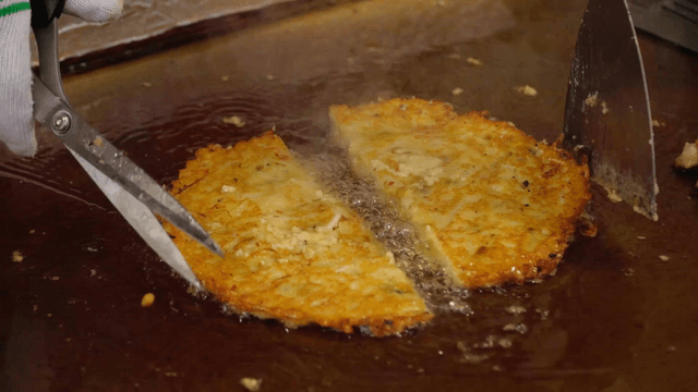 Crispy and savory mung bean pancakes grilled on an iron plate
