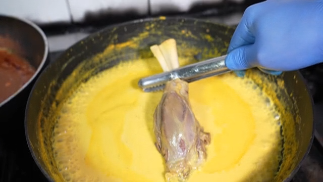 Creamy Mansaf with herbs, tongs for lifting lamb leg