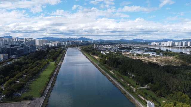 Panoramic view of the Han River and Seoul from daytime to evening