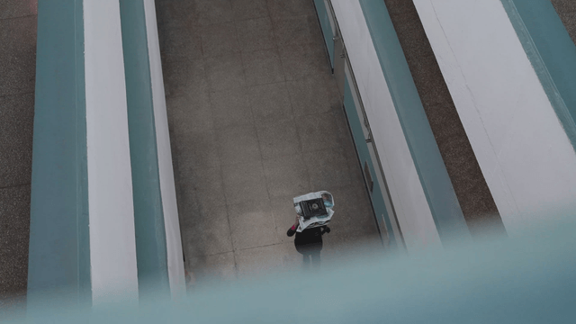 Person walking in a hallway indoors