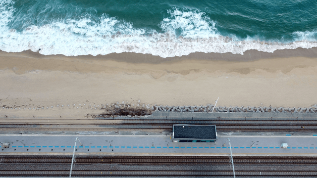 Coastal train station by the sea