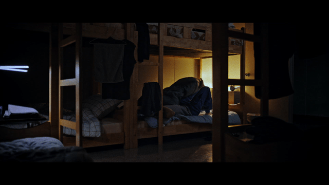 Person sleeping in a dimly lit room