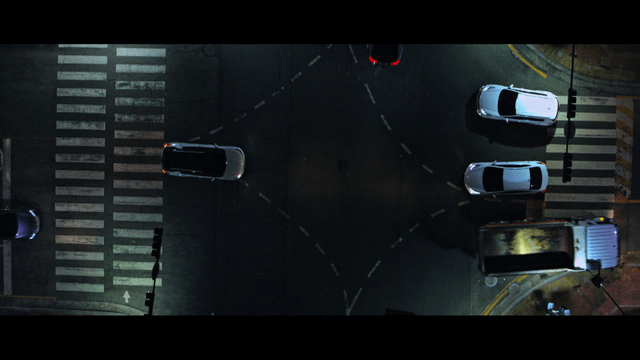 Overhead View of Urban Traffic Intersection