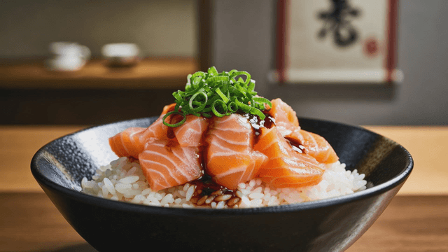 Plate of colorful seafood including shrimp, sashimi, and roe