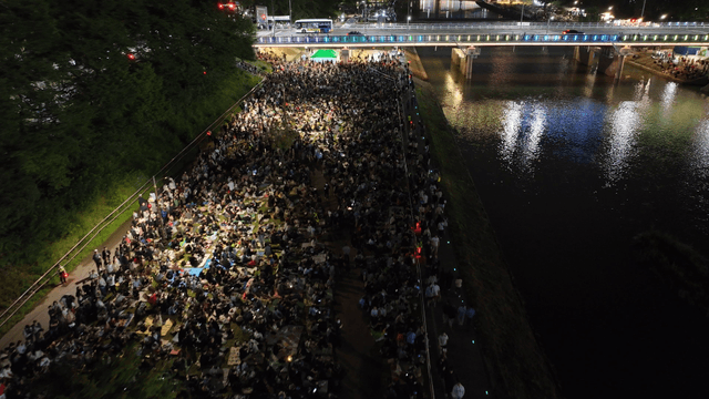Night festivals and crowds along city's riverside