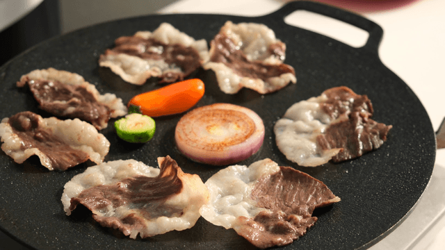 Meat and Vegetables Grilled on a Korean Barbecue Grill
