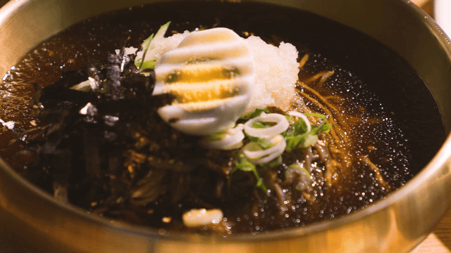 Sizzling iron plate jajangmyeon with vegetables and egg