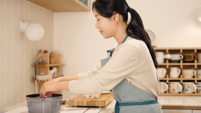 Woman cooking in a cozy kitchen