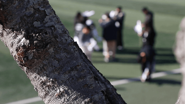 People enjoying cherry blossoms in full bloom at the park