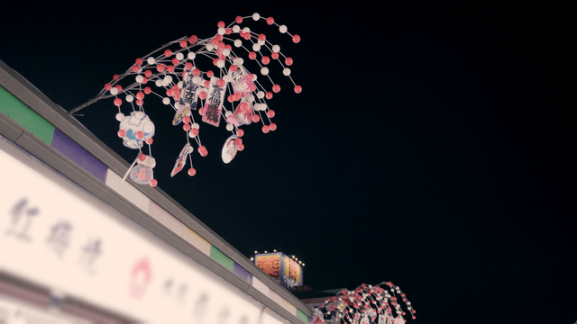 Colorful lanterns glowing at night