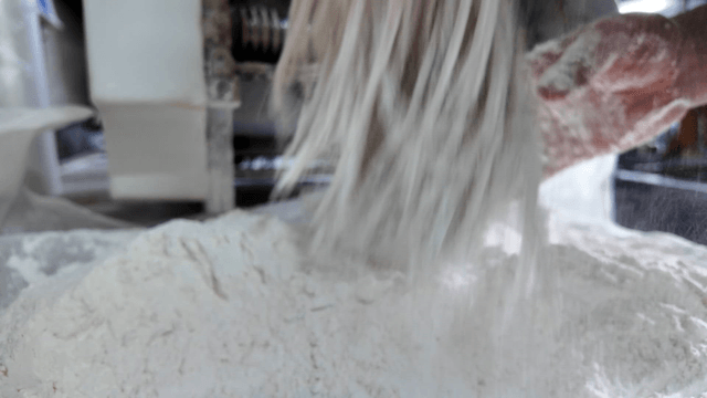 White wheat flour being ground in a rice mill machine