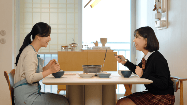 Mother and daughter enjoying a meal together