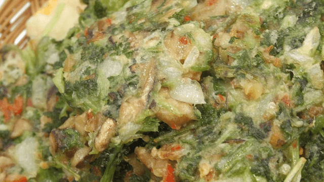 Shiitake mushroom and coriander pancakes and cabbage pancakes in basket