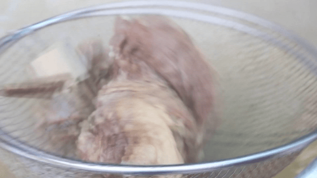 Perilla seeds powder being added to beef leg bone broth