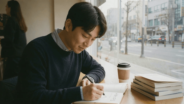 Person reading a book in a cozy cafe