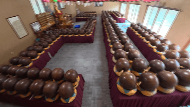 Temple filled with large wooden beads