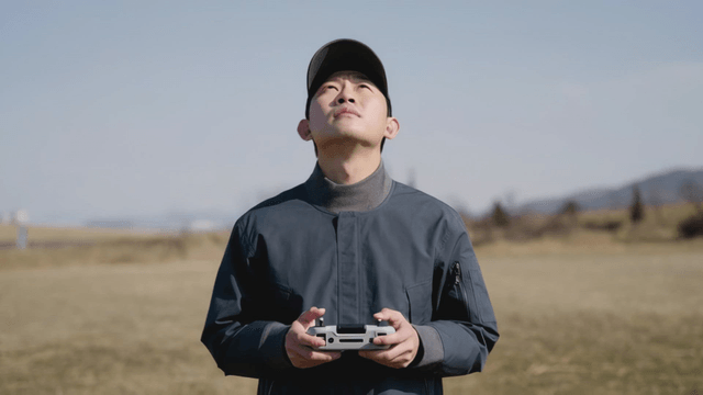 Man operating drone controller in field