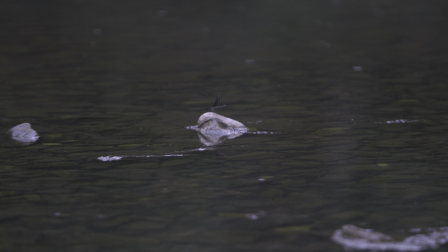 Raindrops falling on a stream