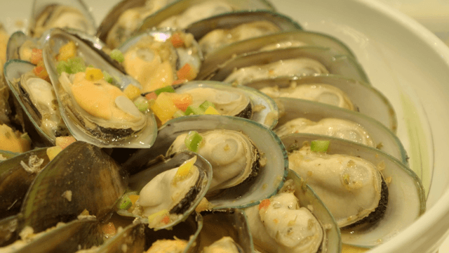 Chopsticks picking tangsuyuk with vegetable sauce on plate