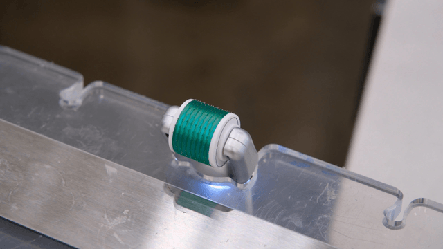 Close-up of a microneedle roller