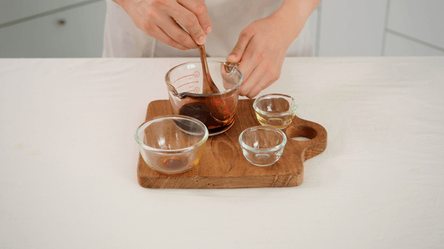 Mixing sauce in a measuring cup