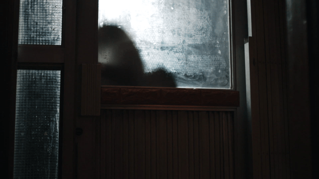 Silhouette of a person through frosted glass