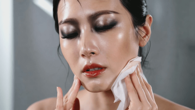 Woman removing makeup with cotton pad