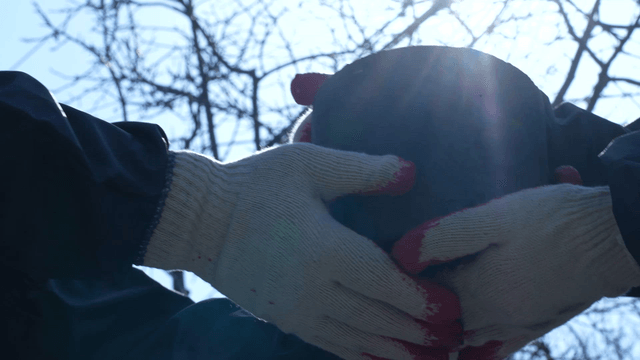 Man Digging with Gloved Hands