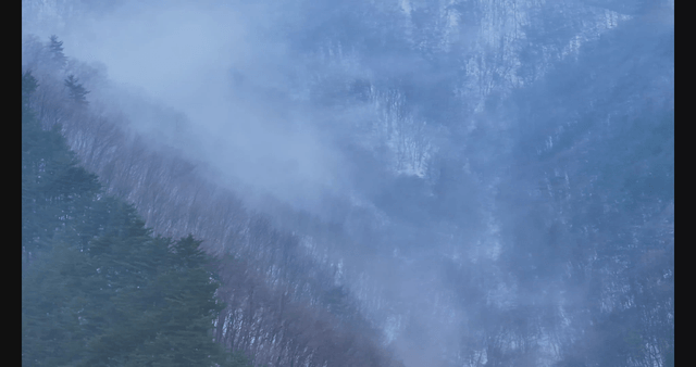 Misty mountains with dense fog