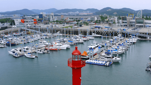 Peaceful afternoon at the marina with numerous yachts and boats docked