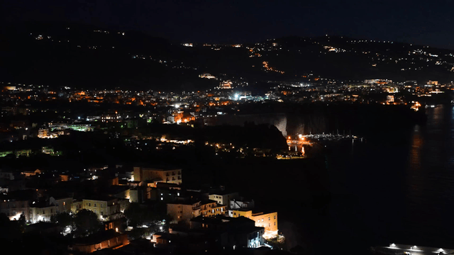 Road in Coastal City at Night with Lights