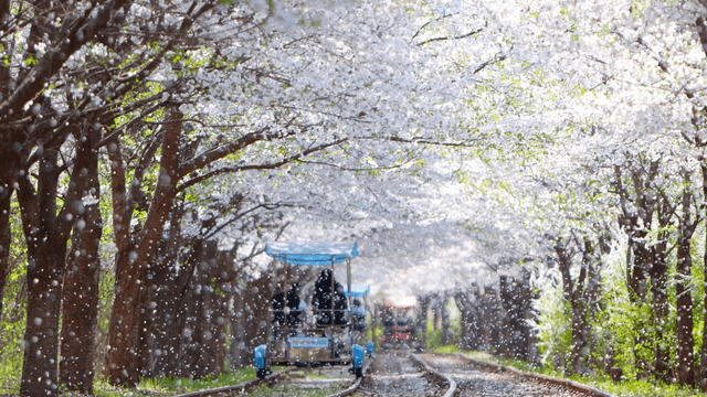 Cherry Blossoms in Full Bloom Swaying in the Wind on a Sunny Day