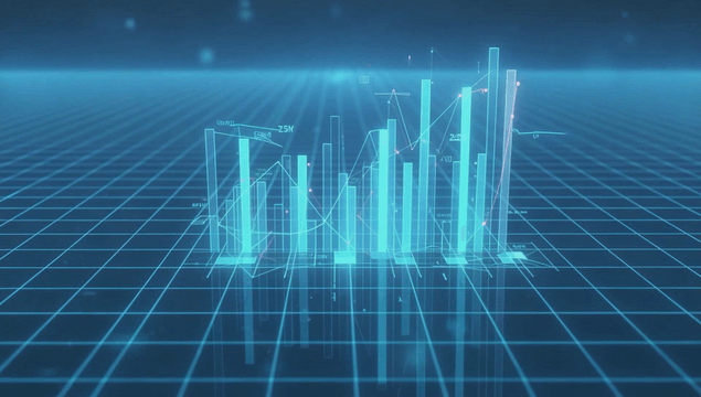Digital data graphs on a futuristic screen