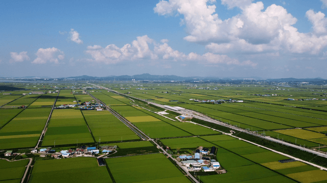 Expansive green rice fields under the sky