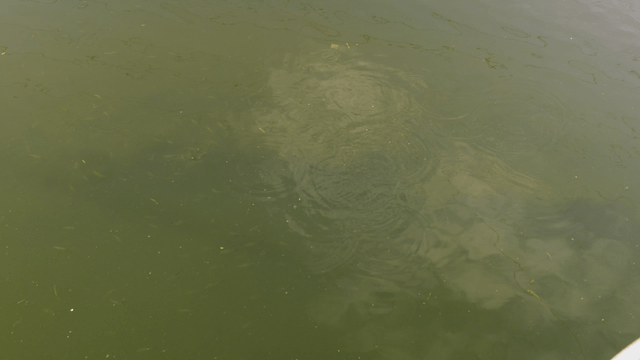 School of fish moving quickly in murky fresh water