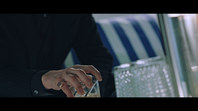 Man in suit pouring whiskey into glass with ice