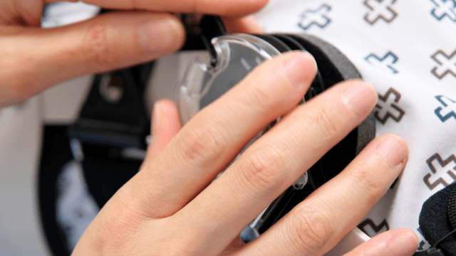 Healthcare worker applies a bandage to a patient's hand with ringer's solution inserted