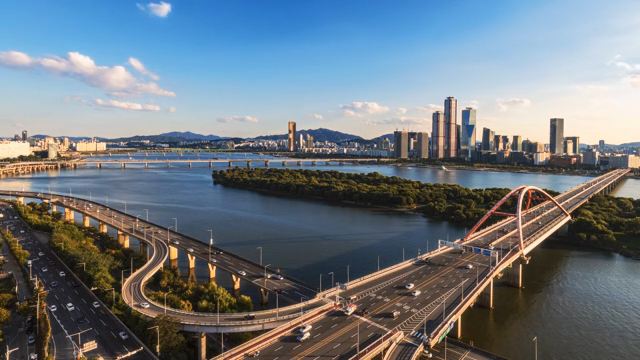 City view with bridge connecting Han River and city