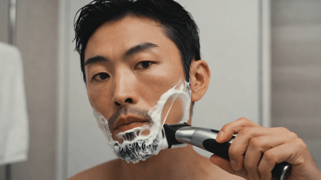 Man shaving with electric shaver