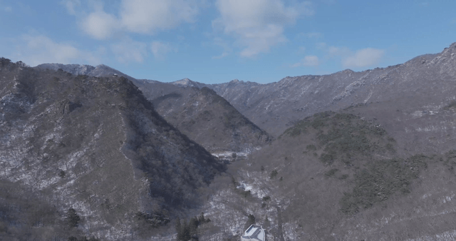 Snow-covered Hanok pavilion in tranquil winter landscape