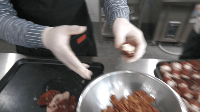 Person who puts walnuts and cream cheese in dried persimmons
