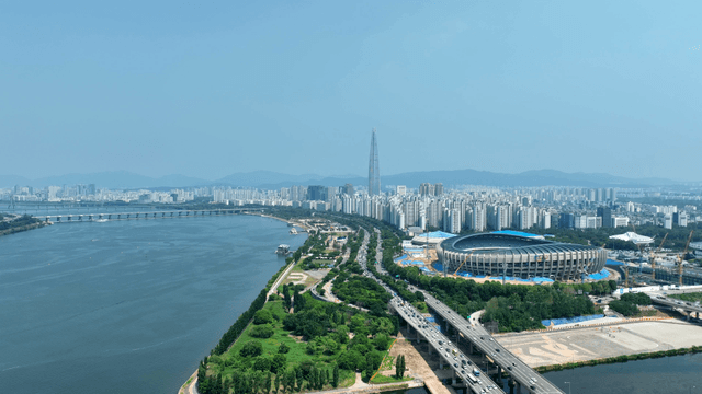 Aerial Shot of Songpa-gu Under a Clear Sky