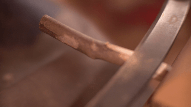 Metal rod being processed in a machine
