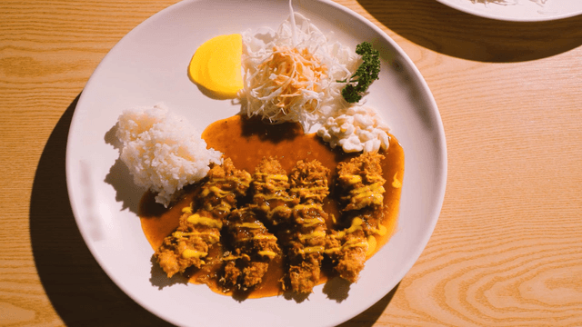 Plate of curry rice with fried cutlet